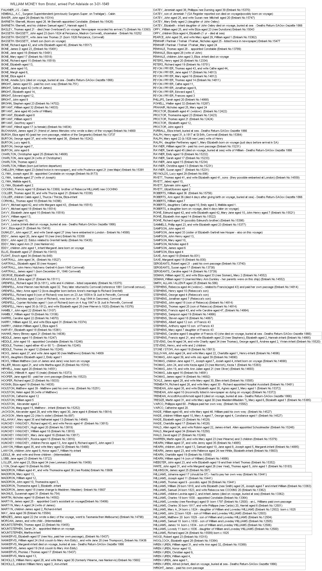 CLICK HERE: to read who paid for their own passage. to read the William Money's CHARTER. My families: John Oatey and cousin Jeremiah Oatey and their families came to South Australia on this voyage.