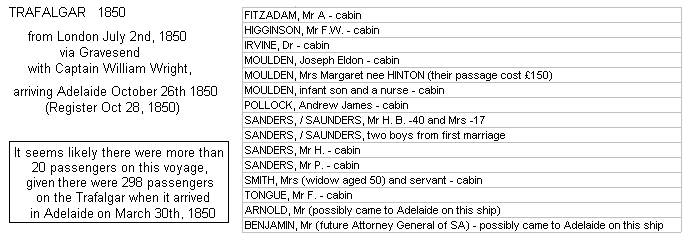 TRAFALGAR - two voyages to Adelaide in 1850