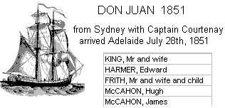 1851 DON JUAN from Sydney with Captain Courtenay, arrived Adelaide July 28th, 1851