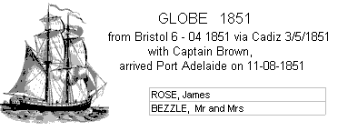 1851 GLOBE from Bristol 6 - 04 1851 via Cadiz 3/5/1851 with Captain Brown, arrived Port Adelaide on 11-08-1851