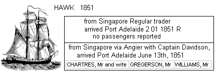 1851 HAWK from Singapore arrived Port Adelaide 14 06 1851 R Regular trader