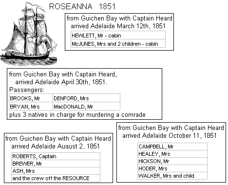 1851 ROSEANNA ffrom Guichen Bay with Captain Heard, arrived Adelaide March 12th, 1851