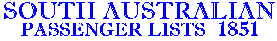 1851 THETIS from Plymouth 30 - 05 1851 - Captain Dodds, arrived Port Adelaide on 6-09-1851 - partial list